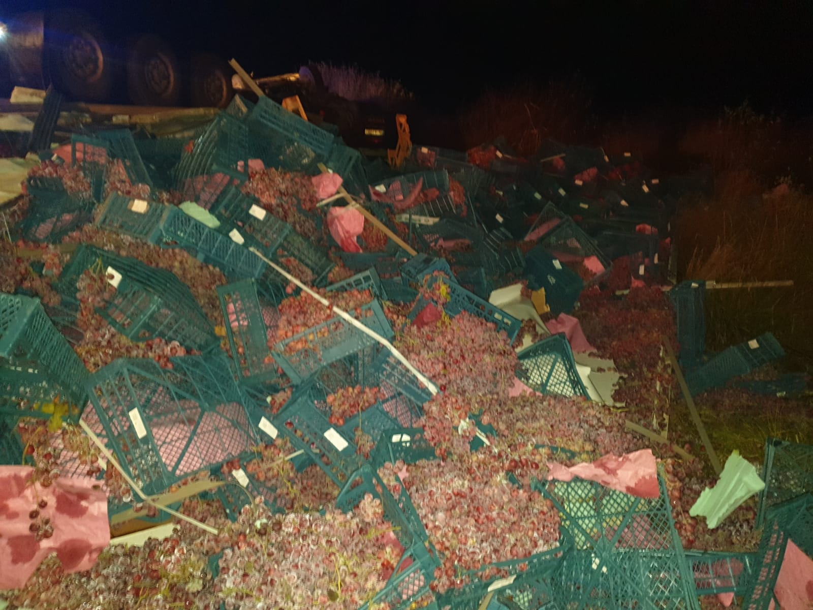 Un tir încărcat cu struguri s-a răsturnat, sâmbătă seară, în afara părții carosabile, la intrare în Siret, în județul Suceava. Șoferul este conștient și a refuzat transportul la spital.