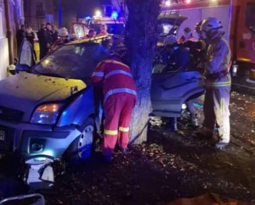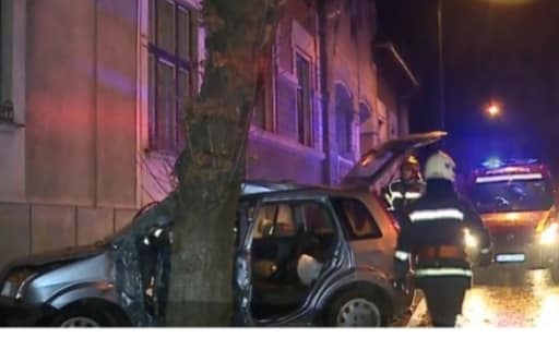Patru adolescente care se întorceau de la o petrecere au ajuns, rănite, la spital. Maşina lor s-a izbit de un copac, apoi a ricoşat într-un bloc.