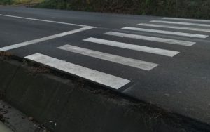 Trecerile de pietoni de pe această porţiune de drum judeţean au fost amenajate pentru a reduce riscul accidentelor în care sunt implicaţi pietoni. Şi asta în condiţiile în care, la ţară, fără să existe astfel de marcaje rutiere, oamenii treceau drumul pe unde apucau.