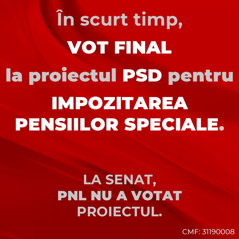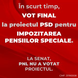 „Principiul de bază în calcularea pensiilor trebuie să fie contributivitatea! Gata cu mega indemnizațiile, gata cu indemnizațiile speciale, gata cu indemnizațiile de lux! PSD nu vrea să mai existe pensionari de rând și pensionari speciali. PSD este singurul partid care a votat în Senat și a arătat că dorește cu adevărat să dispară indemnizațiile speciale din România! PNL, care este acum la guvernare a votat împotriva renunțării la indemnizațiile speciale. Supra-taxarea indemnizațiilor speciale este o decizie pentru restabilirea justiției și echității sociale. Deși sumele obținute la buget din această măsură nu sunt semnificative din punct de vedere macroeconomic, măsura are un rol social uriaș pentru restabilirea echilibrului în societate”, au declarat reprezentanții social-democrați botoșăneni.