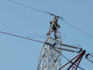 FOTO Un botoșănean, tată a 6 copii, s-a urcat pe stâlp pentru a cere un loc de muncă. Primarul l-a convins să nu se arunce