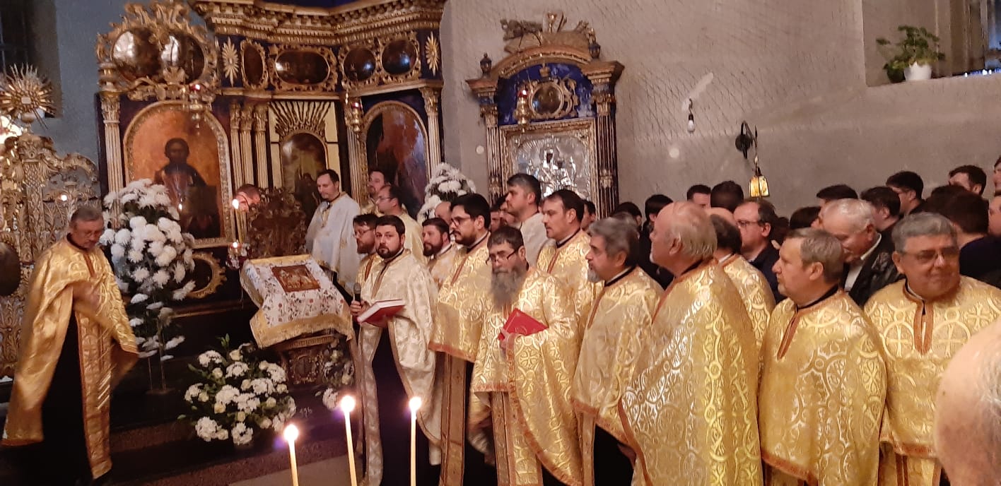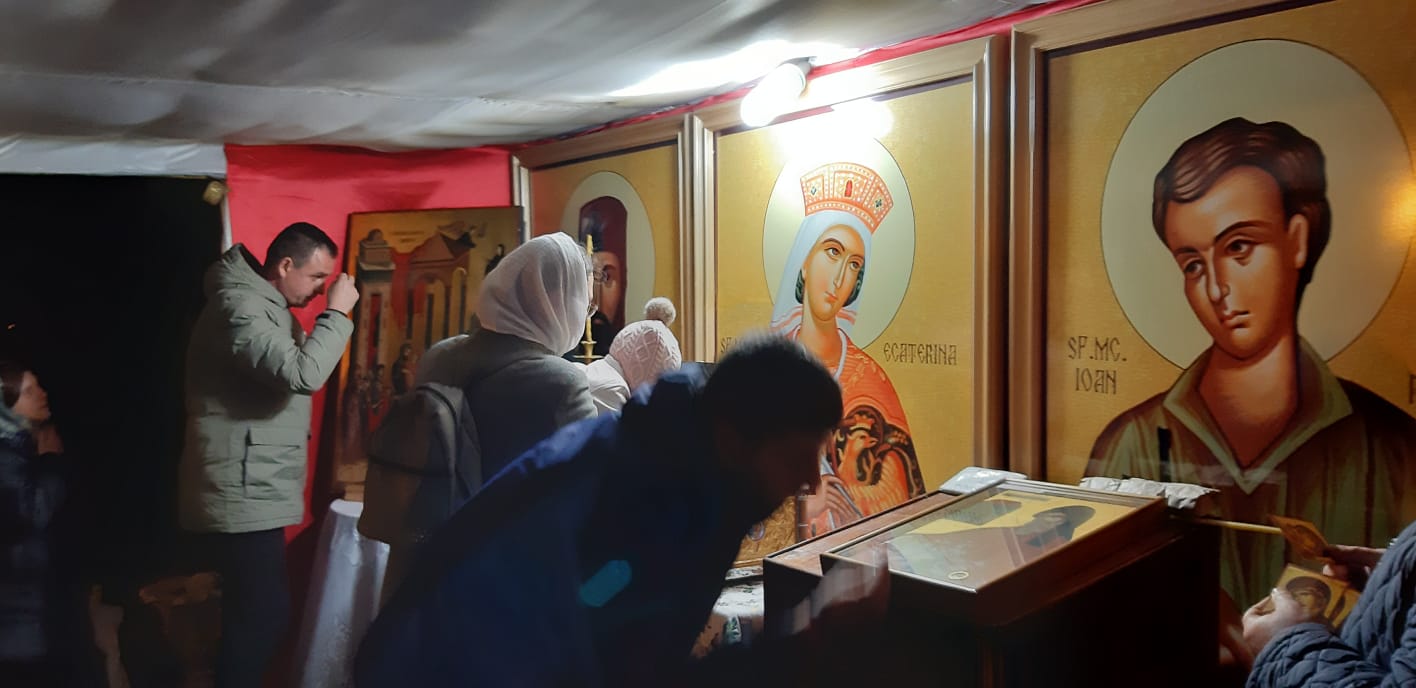 Seara, de la ora 18.00, va avea loc Procesiunea cu Sfintele Moaşte în jurul bisericii, apoi Taina Sfântului Maslu .