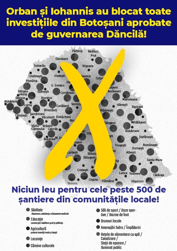 PSD Botoșani condamnă modul de guvernare al noului Executiv condus de Orban și Iohannis, care au lăsat fără bani toate investițiile în desfășurare din județul Botoșani.