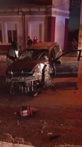 Mașina s-a răsturnat în afara părții carosabile și a intrat în coliziune cu un stâlp.