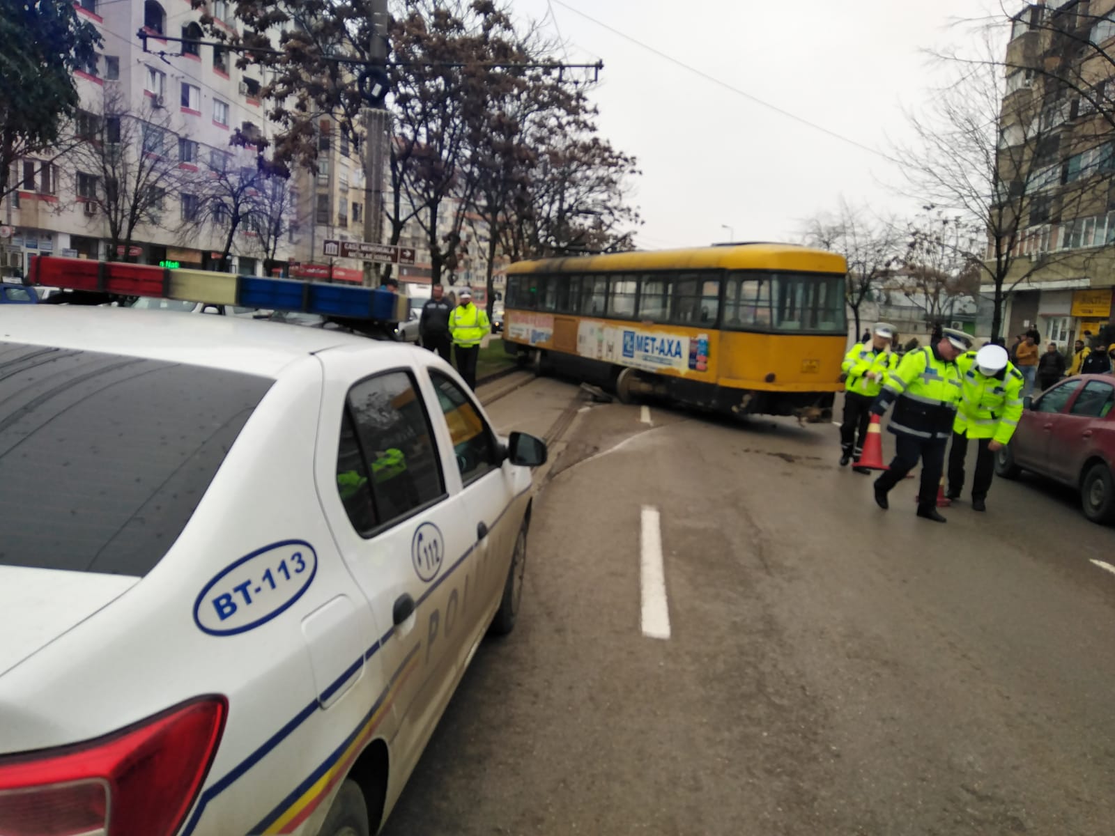 Un tramvai al societății comerciale Eltrans a sărit, joi, de pe șină, după ce una din roțile acestuia s-a rupt. Deraierea a avut loc pe Calea Națională din municipiul Botoșani, chiar în fața restaurantului Select.
