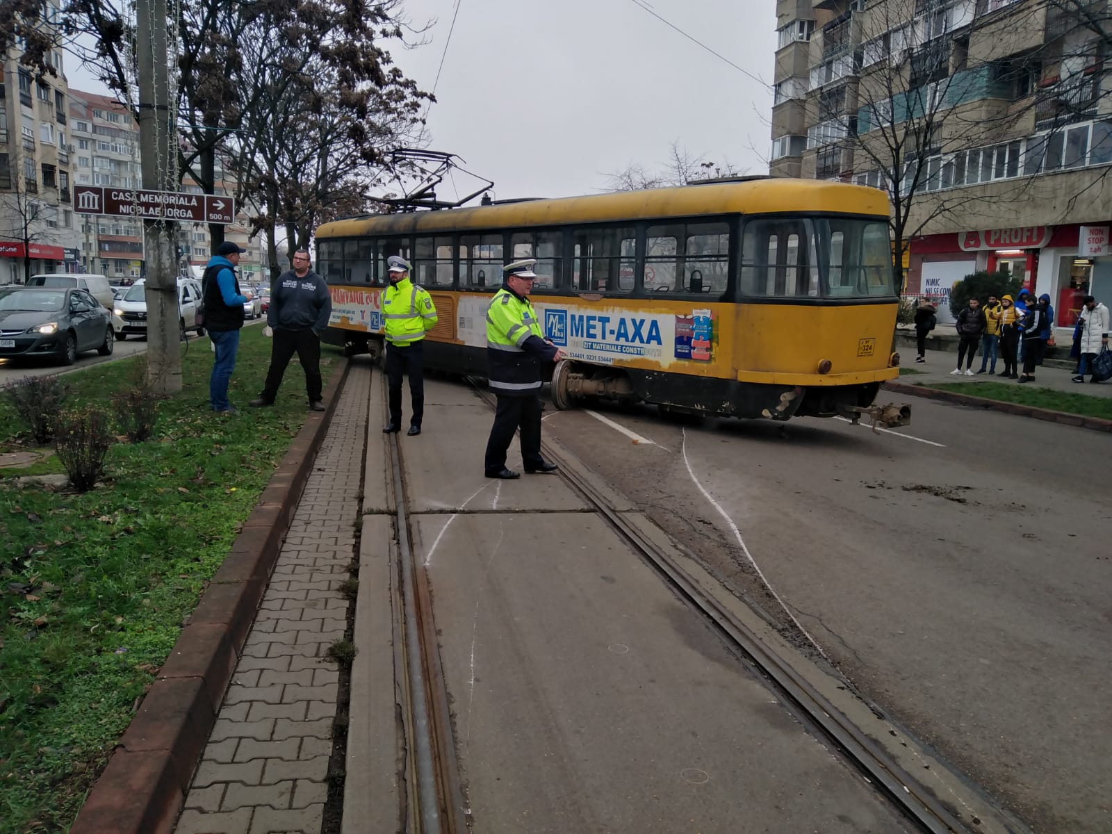 Vagonul a sărit de pe calea de rulare, spatele acestuia afectând una din benzine de mers de pe Calea Națională, disnpre Marchian spre Nicolae Iorga.