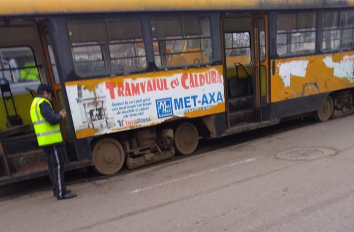 FOTO Încă un tramvai a deraiat la Botoșani. Circulația este îngreunată pe Calea Națională