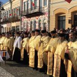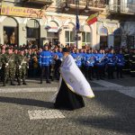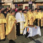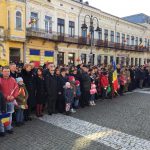 Un sobor de preoţi a oficiat o slujbă în faţa monumentului eroilor, iar apoi a fost prezentat actul Marii Uniri de către un istoric.