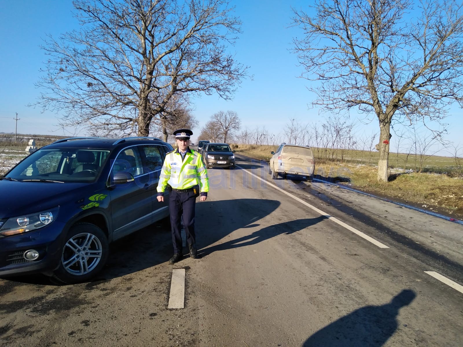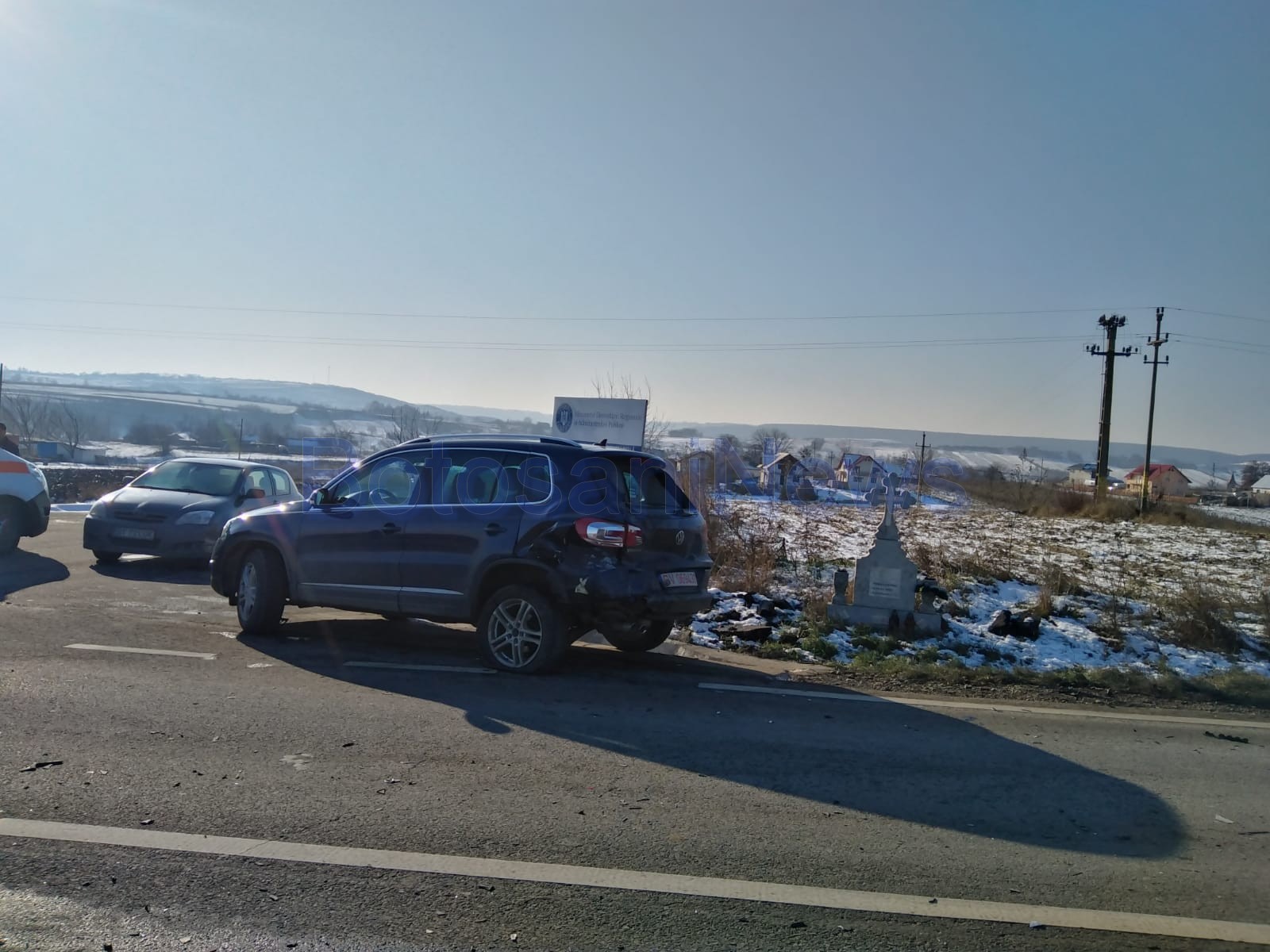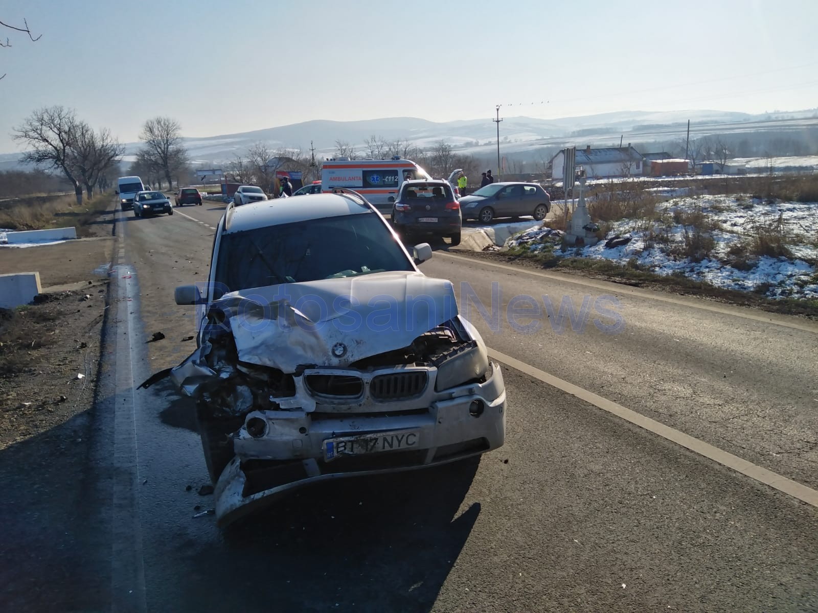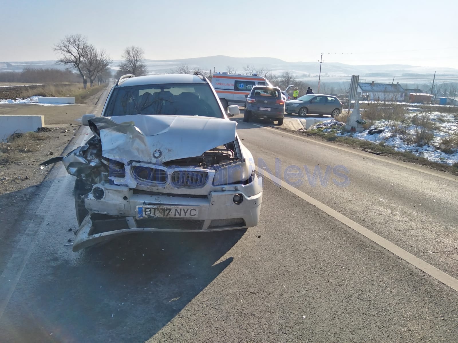 Un accident rutier a avut loc miercuri, la intersecția DN 29B Botoșani- Dorohoi, cu DC 66, care duce la Dolina, în comuna Leorda. Două autoturisme s-au ciocnit puternic. O tânără de 29 de ani, din localitatea, care conducea un VW Tiguan a frânat să facă stânga pe drumul comunal, iar un șofer de 44 de ani, Ioan F., aflat la volanul unui BMW, a lovit-o din spate.
