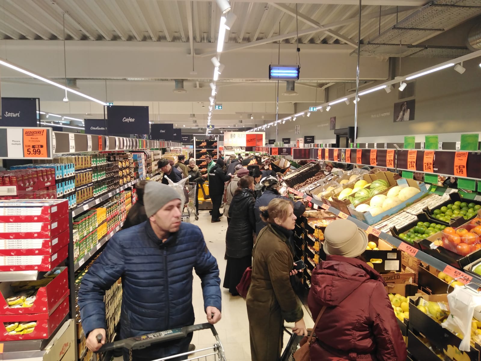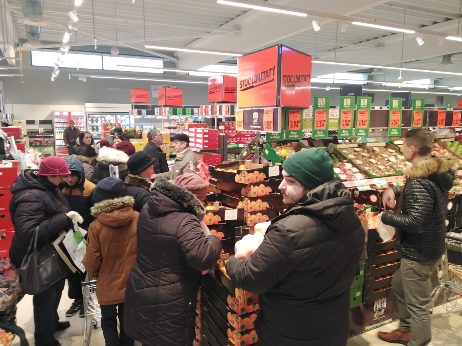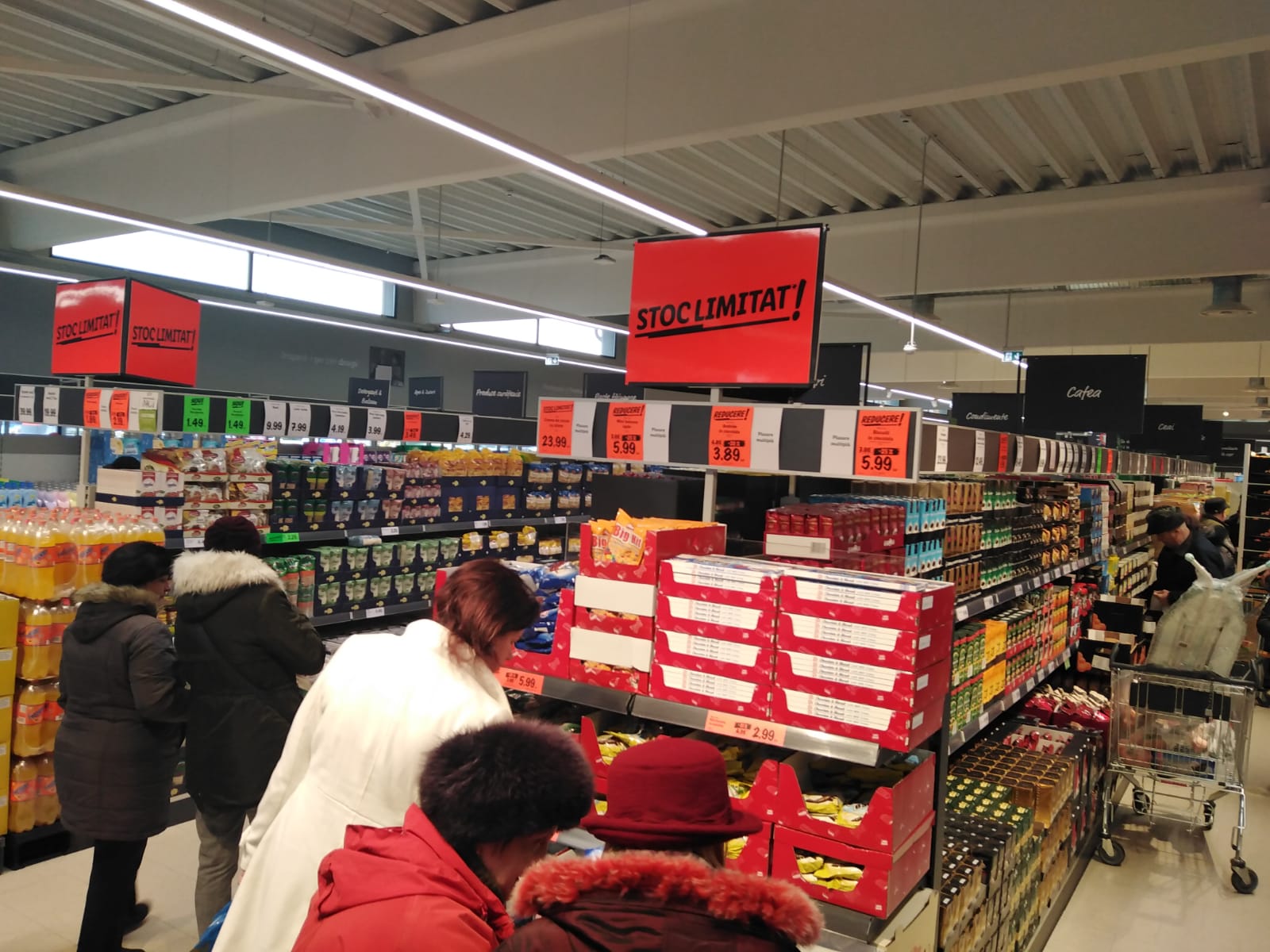 Hipermarketul s-a deschis oficial la ora 7.30, însă aproape 150 de oameni așteptau la momentul respectiv la ușă, pentru fi siguri că beneficiază de promoțiile marelui retailer. În ziua inaugurării vor fi reduceri de peste 20% la articole nealimentare, dar și la cele alimentare, precum mezeluri, lactate, dulciuri și altele.