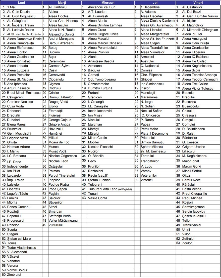 Colectarea selectivă se va efectua în aceeași zi cu colectarea deșeurilor menajere, cu autovehicule diferite, după următorul program: