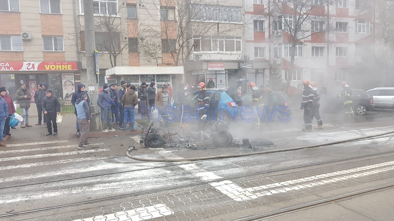 VIDEO & FOTO Imagini incredibile! Mașină făcută scrum pe o stradă centrală din Botoșani