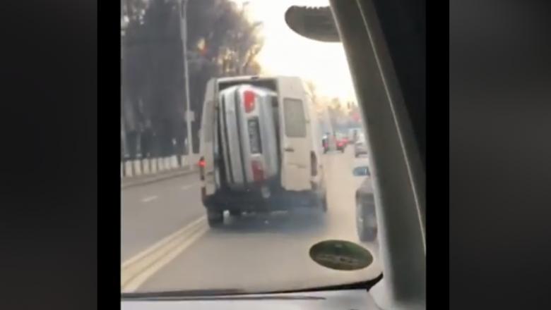 O mașină BMW a fost băgată într-o dubă și transportată pe străzile din Rădăuți, județul Suceava. Pentru a încăpea, autoturismul a fost răsturnat pe o parte. Imaginile postate pe Facebook au stârnit amuzamentul internauților.