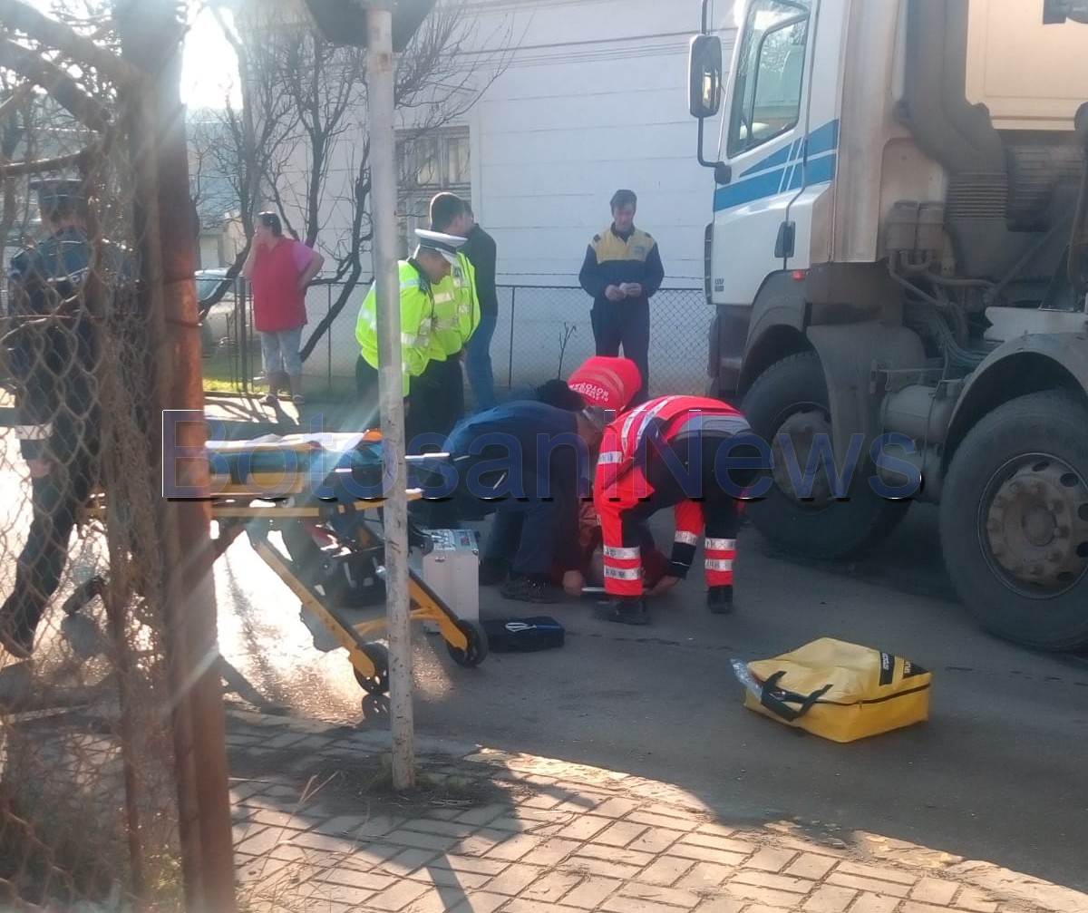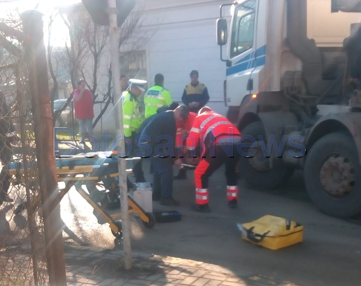 Un accident a avut loc miercuri, la intersecția străzilor Petru Rareș și Ion Creangă din municipiul Botoșani. O persoană a fost călcată pe un picior de o betonieră.