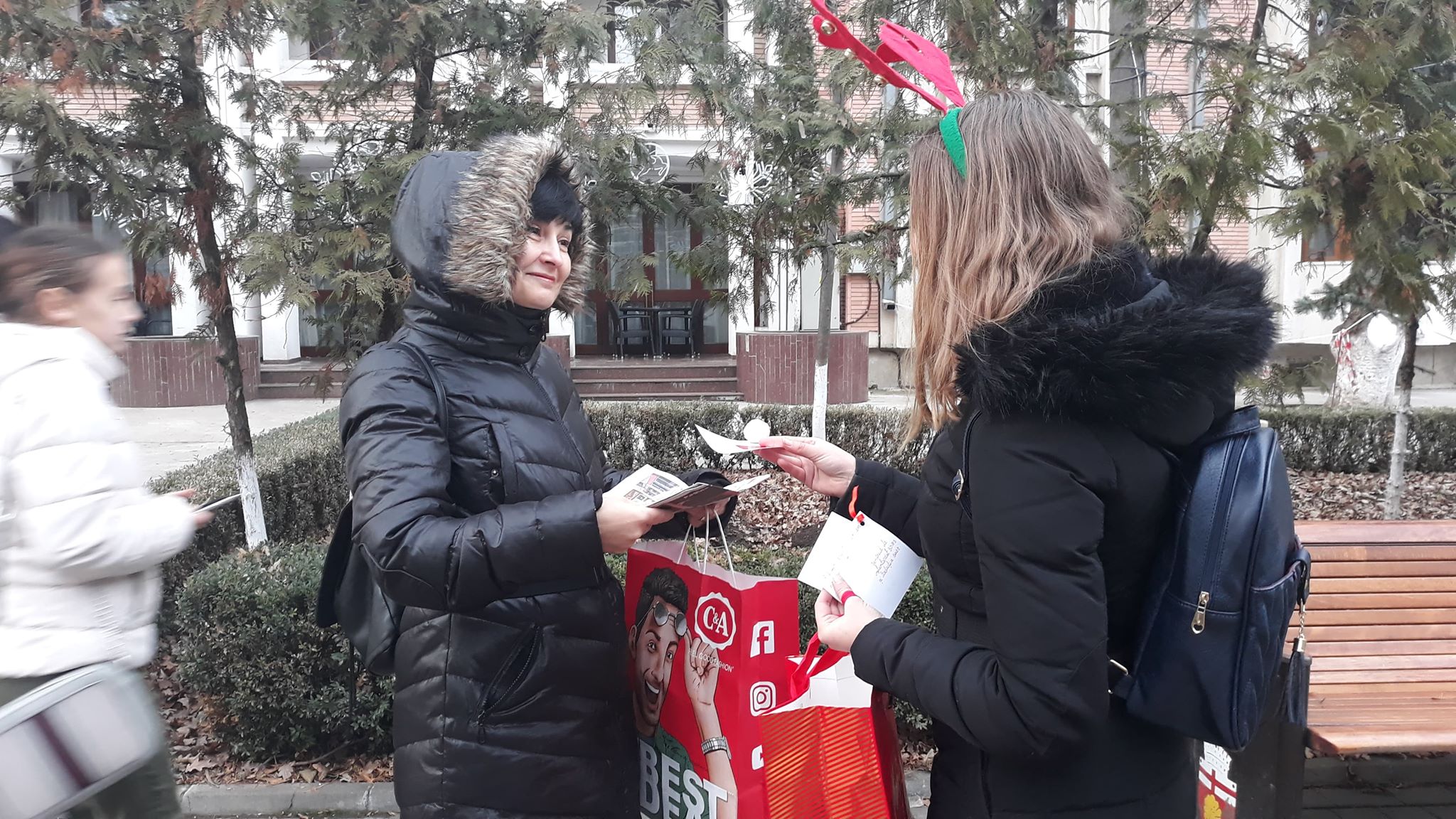 Tinerii de la Centrul de voluntariat B.O.M.D (Botoșani, Orașul Meu Drag) i-au surprins, vineri, pe botoșăneni cu un zâmbet. Împreună cu micuții care fac parte din redacția Buzz, voluntarii B.O.M.D au dorit să le aducă botoșănenilor spiritul sărbătorilor mai aproape.