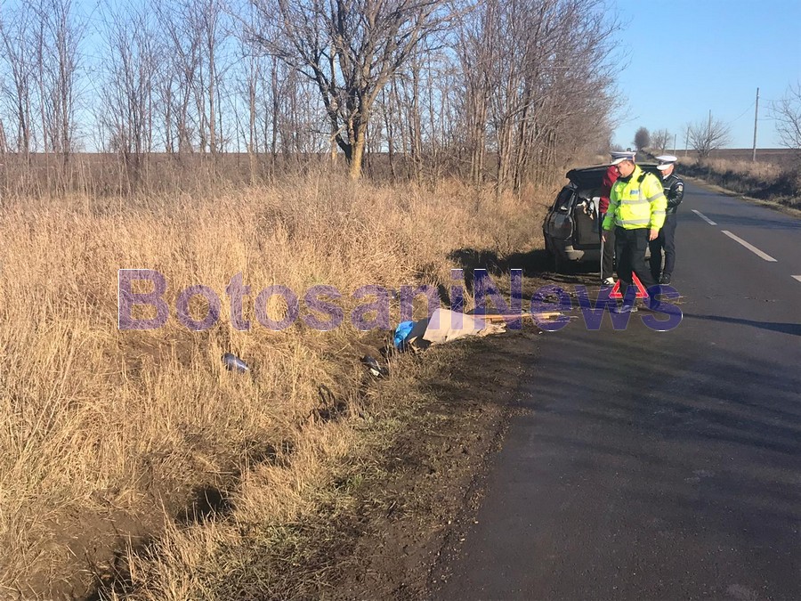 FOTO Accident la Botoșani! Un bărbat s-a răstunat cu mașina pe un drum județean