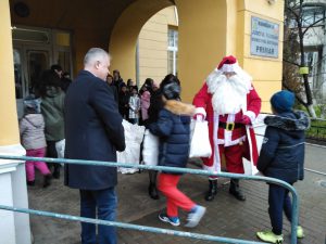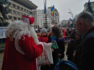 Sute de copii din municipiul Botoșani au primit, luni, cadouri de la Moș Crăciun, care a ajuns în fața Primăriei. Acțiunea a fost organizată de municipalitate, la ea participând și primarul Cătălin Flutur.