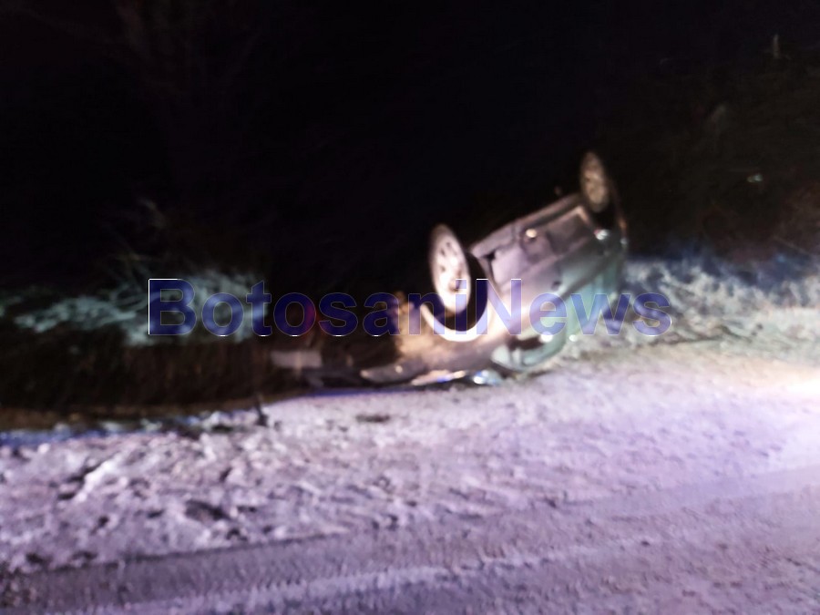 Accidentul de sâmbătă seară de la Tudora, de pe drumul județean DJ 208 I, a fost produs de o șoferiță de 34 ani. Femeia, care este din județul Neamț, nu a adaptat viteza de deplasare la conditiile de drum, a pierdut controlul asupra directiei de mers, a ieșit de pe carosabil și s-a răsturnat pe cupolă.