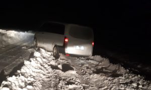Mașina în cauză derapase din cauza zăpezii aduse de vântul puternic pe carosabil și se oprise perpendicular pe axul drumului. Cu ajutorul lopeții de zăpadă din dotare, jandarmul l-a ajutat pe șoferul autoutilitarei, reușind să o repună în circulație.