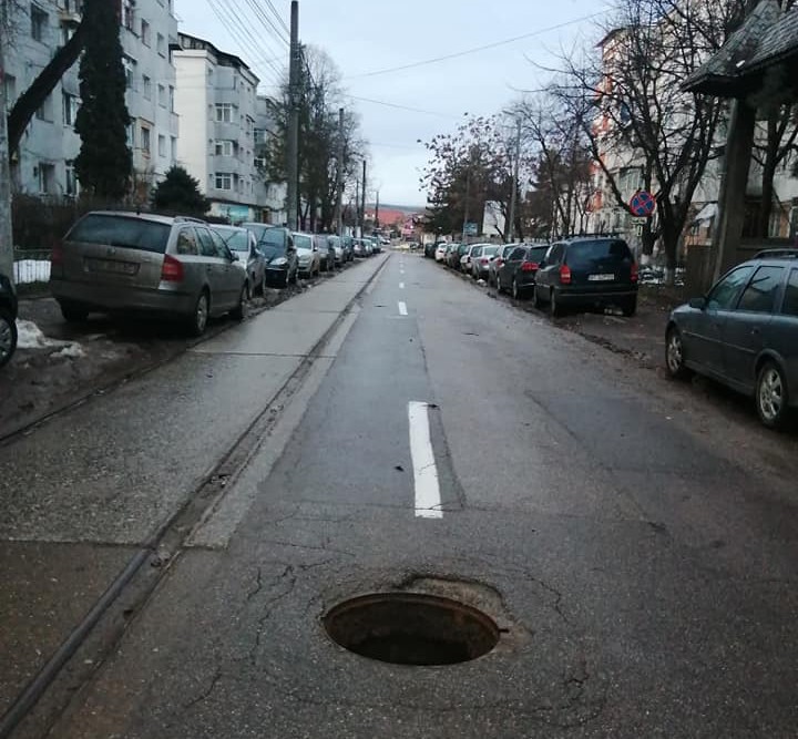 Gaura care duce în rețeaua de canalizare apare pe porțiunea de stradă cuprinsă între Inspectoratul Școlar și Colegiul Economic Octav Onicescu, în dreptul Ocolului Silvic. Ea reprezintă un pericol uriaș în special pentru șoferi.