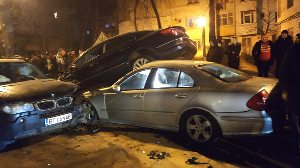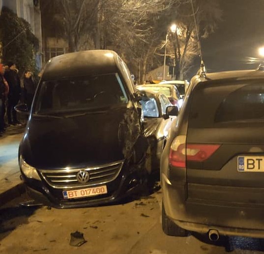 Un accident pe cât de spectaculos, pe atât de păgubos s-a produs în noaptea de joi spre vineri în municipiul Botoșani. Un tânăr de 31 de ani, aflat sub influența alcoolului, a intrat cu un BMW, în mai multe mașini parcate pe strada Săvenilor, în fața magazinului Profi.