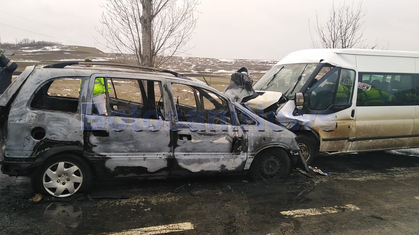 Imediat după momentul impactului, autoturismul a luat foc. Cei trei pasageri au reușit sa iasa din masina. In interior, pe bancheta din spate a rămas o femeie inconstienta. Un pompier aflat în timpul liber, plt. Maj. Cătălin Grindiei, a încercat sa stingă incendiul, nu a reusit, si ajutat de alți participanți la trafic a reușit sa scoata victima inconstienta din autoturism”, precizează ISU Botoșani.