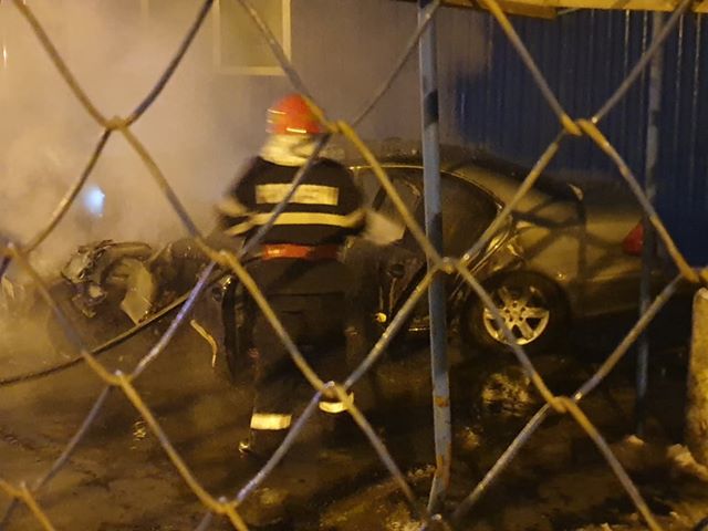 FOTO O mașină a ars ca o torță. Era parcată lângă o spălătorie din Botoșani