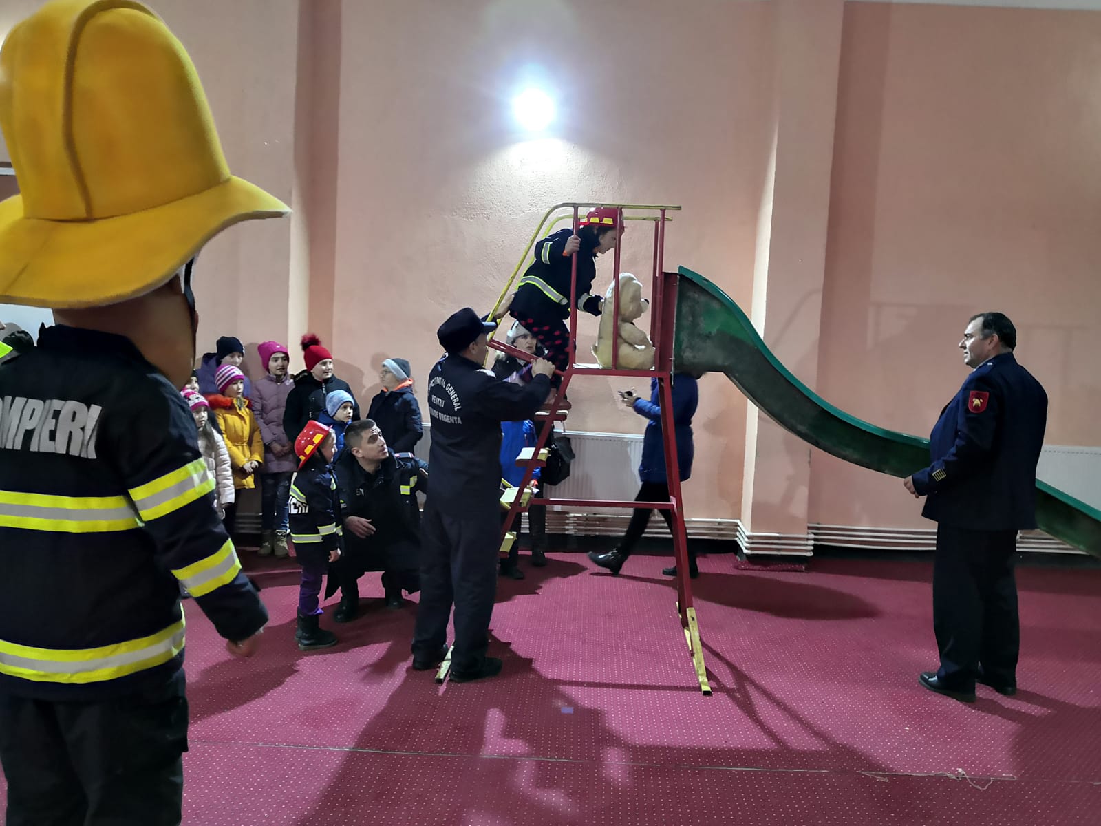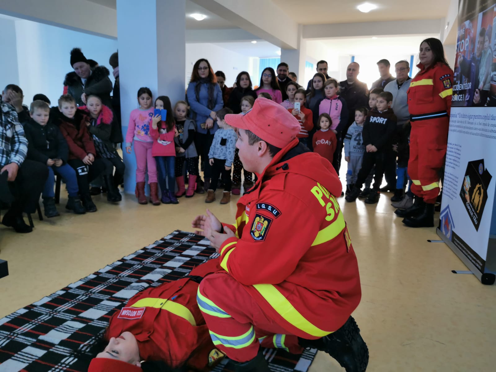 În timp ce adulții au învățat cum să prevină accidentele casnice sau cum să acorde primul ajutor în astfel de situații, cei mici au participat la o activitate interactivă cu rol educativ în domeniul situațiilor de urgență, condusă de mascota inspectoratului, Sam Pompierul. Echipați cu costume de intervenție, micii pompieri au plecat în misiune cu „autospecialele de intervenție”, au trecut printr-un tunel, au salvat ursuleţul sau cățelul de pe tobogan, au alergat printre jaloane şi au stins un incendiu imaginar. Au fost răsplătiți cu dulciuri și multe aplauze.