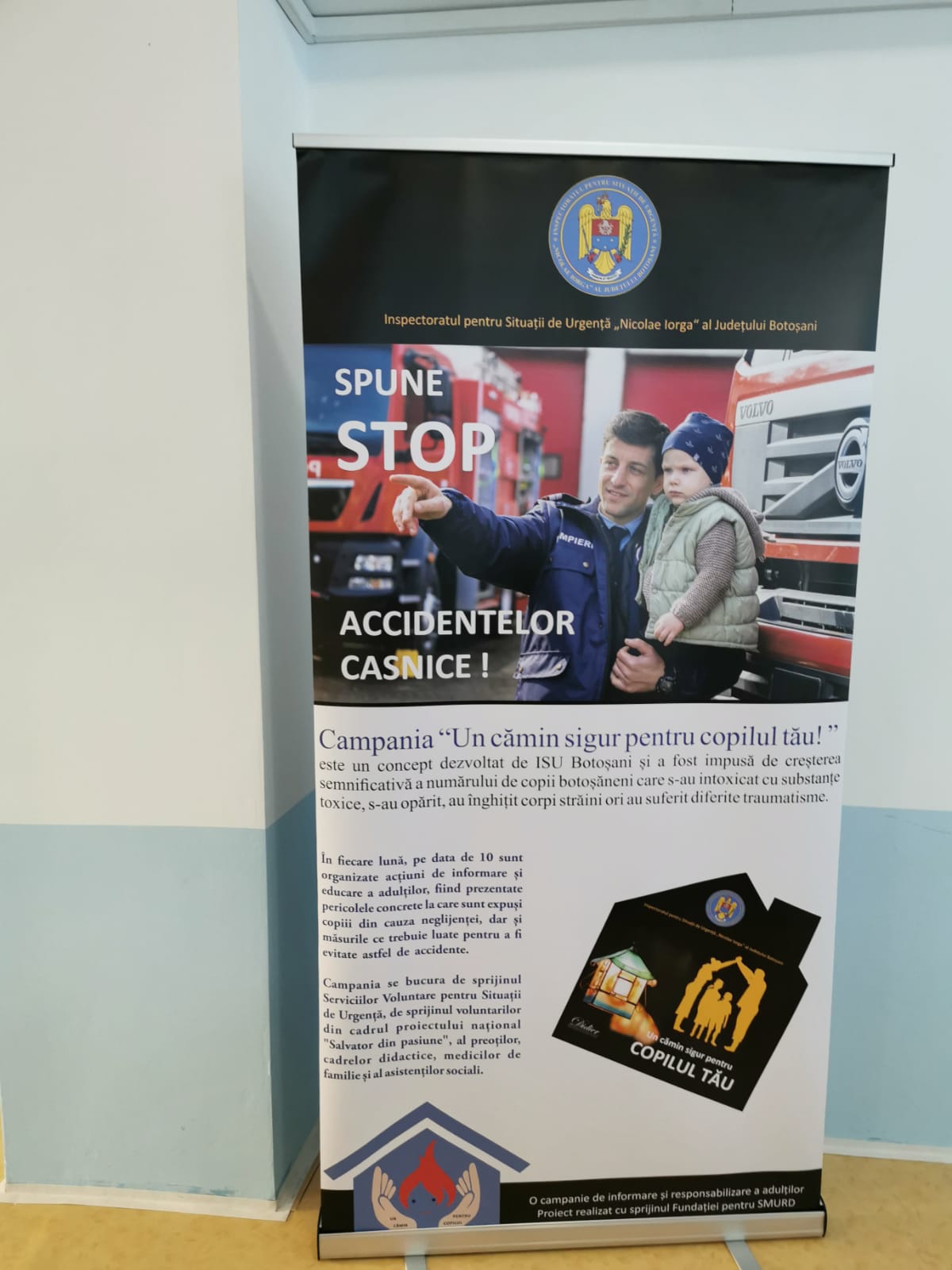 Campania de informare și responsabilizare a adulților ”Un cămin sigur pentru copilul tău”, derulată de Inspectoratul pentru Situații de Urgență „Nicolae Iorga” al Județului Botoșani, în ultimele șase luni, a determinat conștientizarea de către părinți a pericolelor la care sunt expuși copiii în mediul casnic.
