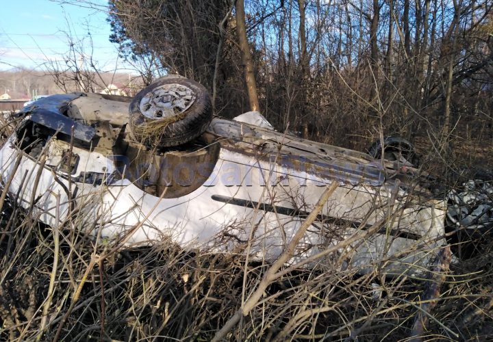 FOTO & VIDEO Accident la Baisa! Doi bărbați răniți după ce s-au răsturnat cu mașina în pădure. Șoferul era băut