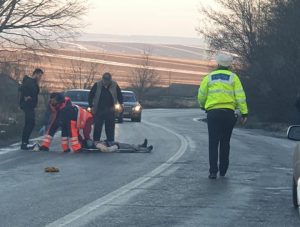 Femeia, grav rănită, a rămas întinsă pe șosea, ea fiind preluată de o ambulanță și transportată la Spitalul Județean de Urgență Mavromati.