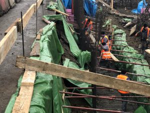 Este vorba de strada Împărat Traian, acolo unde se lucrează la construirea unui zid de sprijin, după ce anul trecut o bucată din trotuarul stradal s-a surpat din cauza inundațiilor.