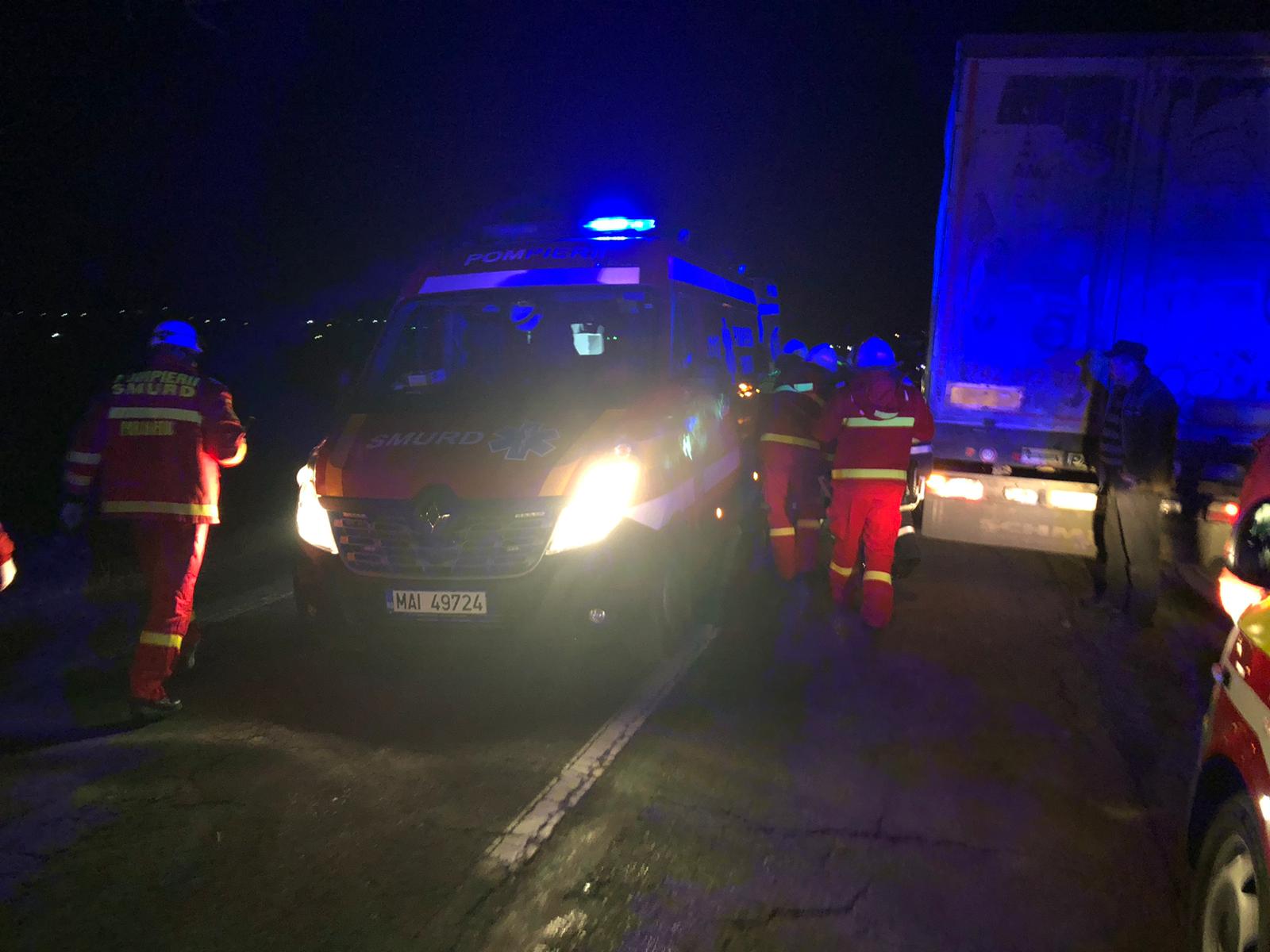 La locul respectiv au intervenit pompierii militari cu o autospeciala pentru descarcerare si doua ambulante SMURD, cu sprijinul unui echipaj SAJ.