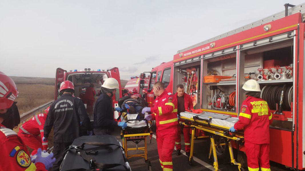 În accident au fost 7 victime, dintre care una aflată în stare de inconștiență.
