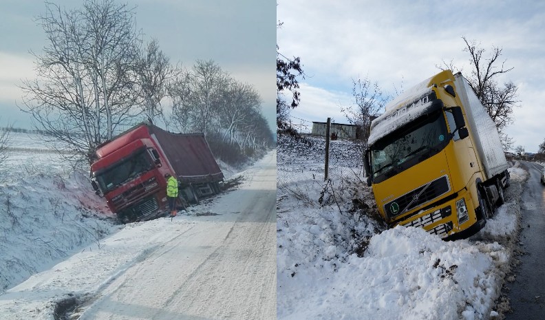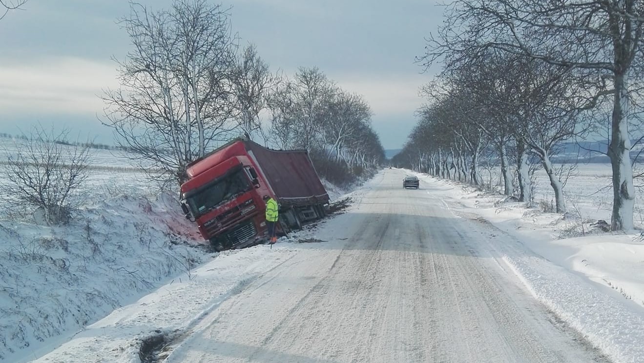 Două camioane au ieșit în decor miercuri seară pe fondul zăpezilor puternice, ele rămânând peste noapte pe marginea drumurilor. Un camion care circula dinspre Tudora spre Joldești a derapat și a ajuns în șanț. Mașina a rămas acolo până joi după-amiază.