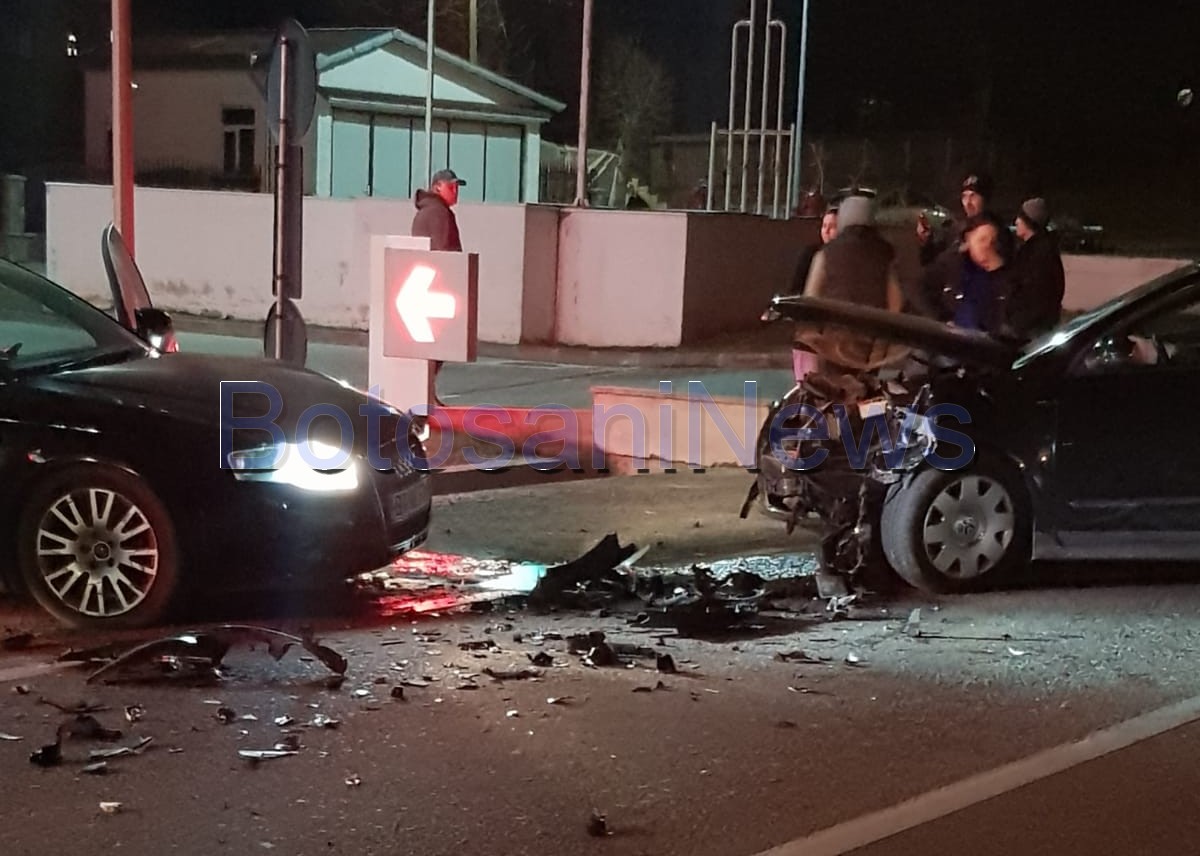 Un accident rutier a avut loc, miercuri seară, la intrarea într-o benzinărie din județul Botoșani. O femeie circula dinspre Botoșani cu un VW, iar la intrarea în benzinăria Soccar de la Răchiți, nu a acordat prioritate unui Audi cu volan pe dreapta, care venea spre Botoșani, cele două autoturisme ciocnindu-se.