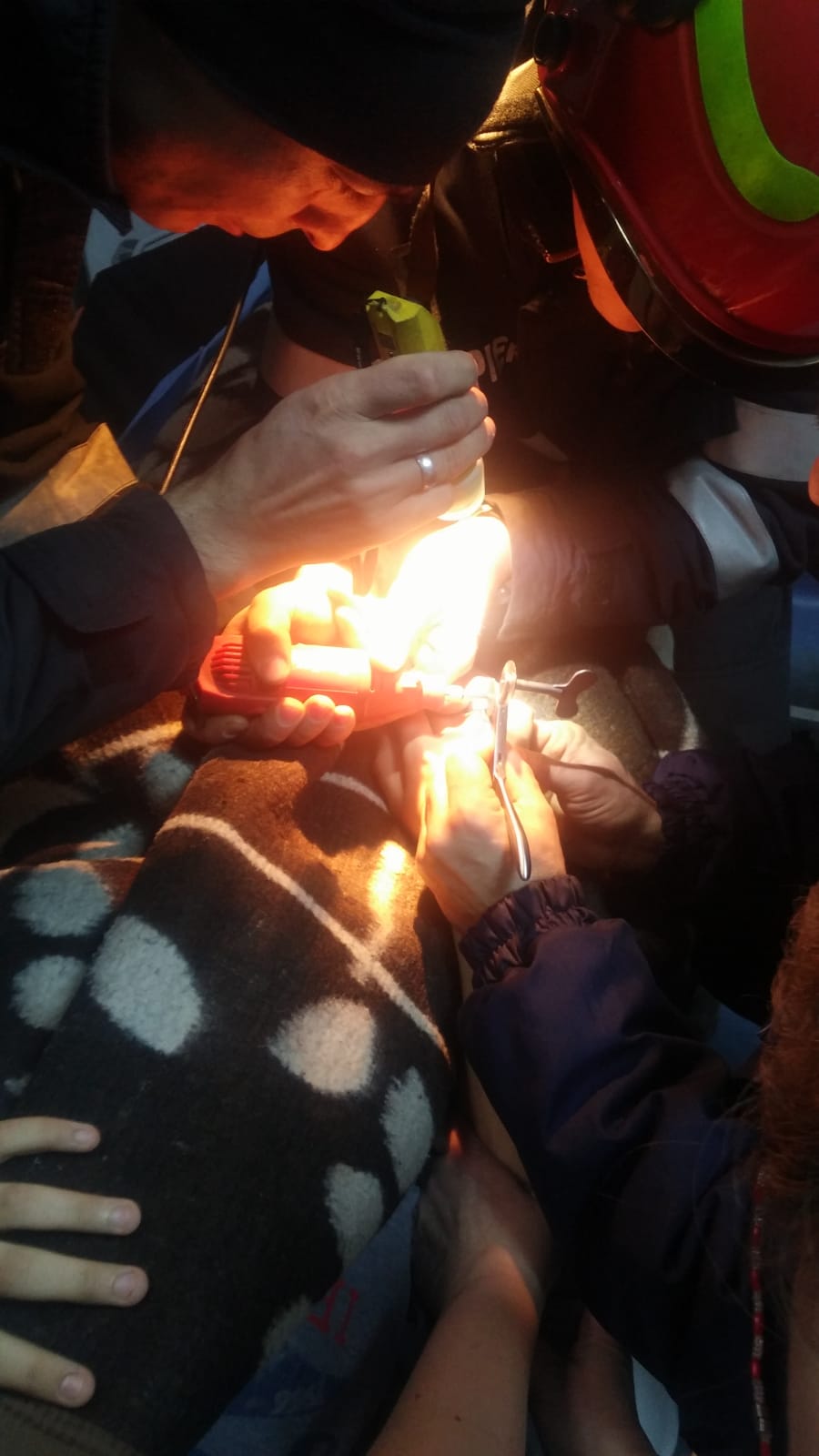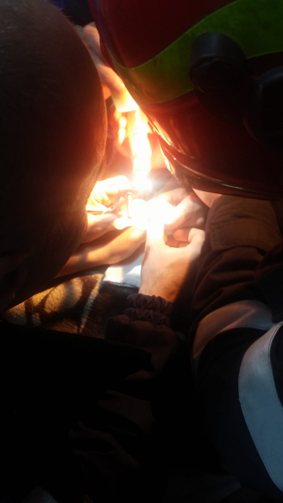Echipajul format din plt.adj. Marius Ciprian Ciocodeica, plt. adj. Dragoș Hudisteanu, plt.maj. Ionuț Honciuc si plt.maj. Radu Sorlescu au intervenit, mai bine de o jumătate de ora, pentru a tăia inelul. Intervenția a fost extrem de dificila întrucât a fost nevoie de îndemânare, precizie si atenție sporita.