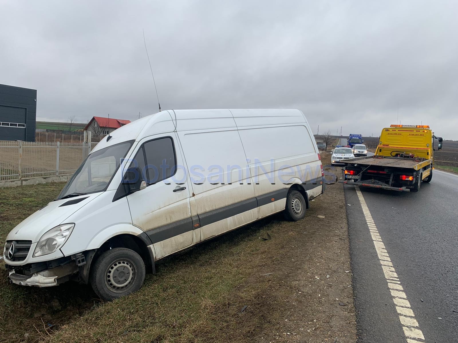 Un om de afaceri din Botoșani a fost implicat, joi, într-un accident rutier pe drumul Botoșani- Suceava. Bărbatul conducea o dubiță spre Suceava, iar înainte de intrarea în Vlădeni, acesta a încercat să vireze dreapta, să intre pe un podeț, să întoarcă, iar un Audi, care venea din spate, a intrat în el.
