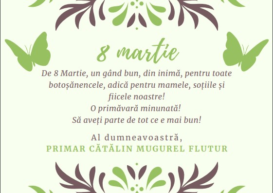 Primarul municipiului Botoșani, Cătălin Flutur, a transmis un mesaj de felicitare către botoșănence cu prilejul zilei de 8 Martie.