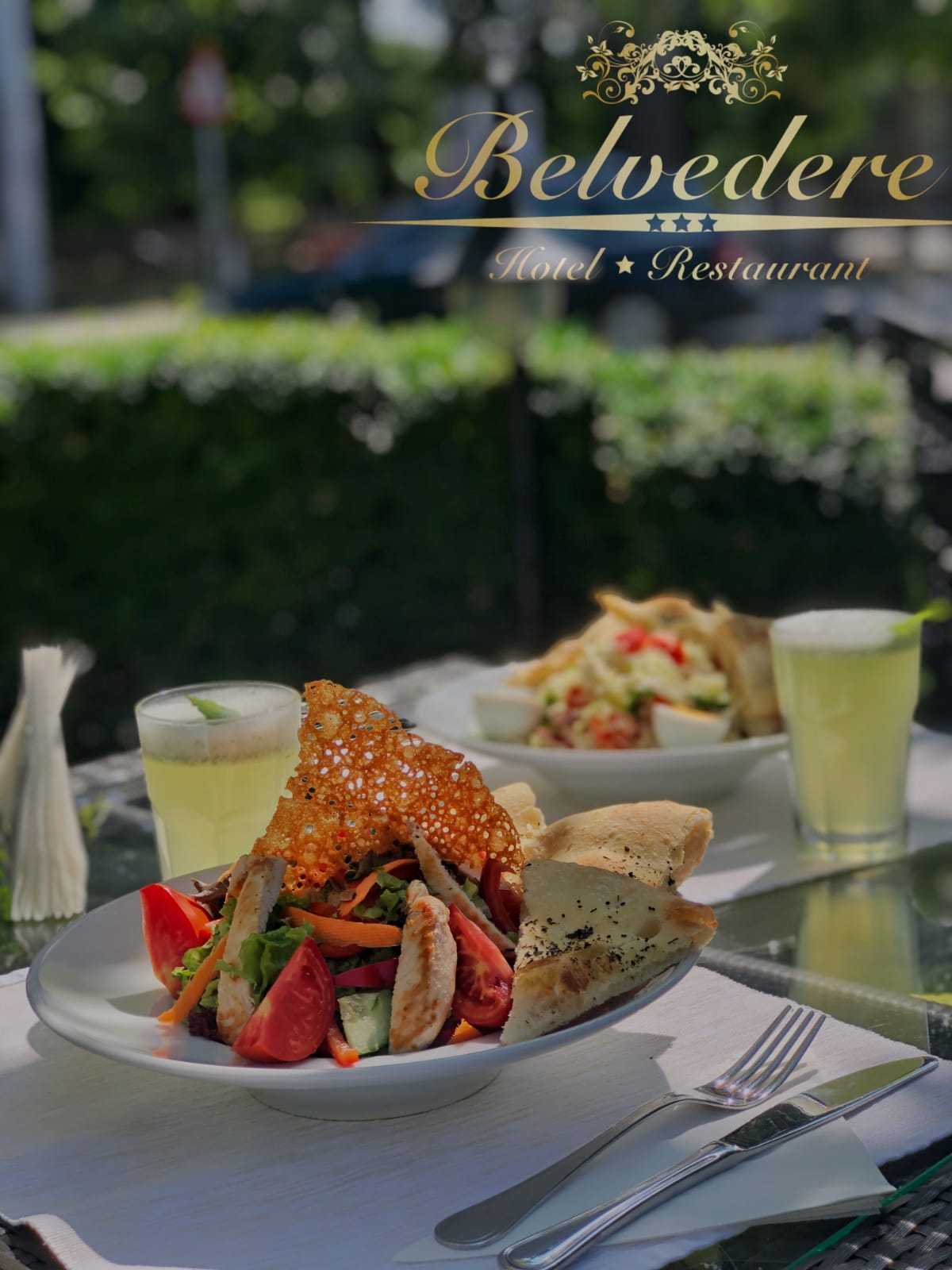 Zilnic, Belvedere Hotel Restaurant oferă, pe langa meniul a la carte, meniul zilei cu 3 variante, produse de post, produse vegetariene, platouri festive, oferte saptamanale cu reducere 20% si posibilitatea de catering la servici sau acasa, oferte speciale de Paste sau Craciun.