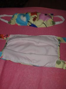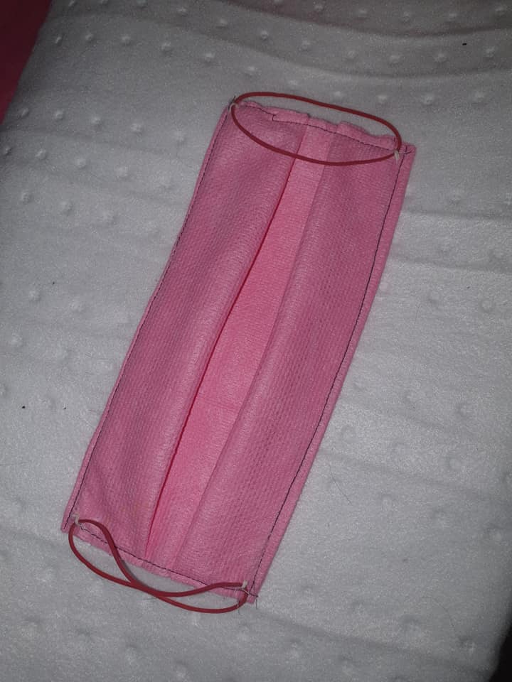 „Materiale : lavete, elastic, ata , ac. Laveta se pune in dublu strat. Se coase la mașină, de mână sau cu adeziv pentru textile. Sunt OK dacă nu găsești in farmacii si trebuie să ieși din casă la cumpărături. Mie asa mi-a iesit. Alt tip de măști facute de mine sunt din material textil elastic ( se mulează mai bine pe față). Eu am folosit un halat de spital, poate fi tricou, etc, improvizație! In strat dublu, poate fi triplu, depinde de densitatea materialului. Pot fi spălate si reutilizate. Nu sunt profesionale dar bune dacă e musai să ieșim din casă”, spune Cardaș.