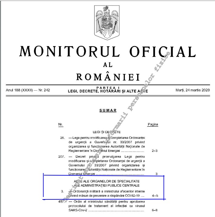 ORDONANȚA MILITARĂ nr. 3 din 24.03.2020 privind măsuri de prevenire a răspândirii COVID-19