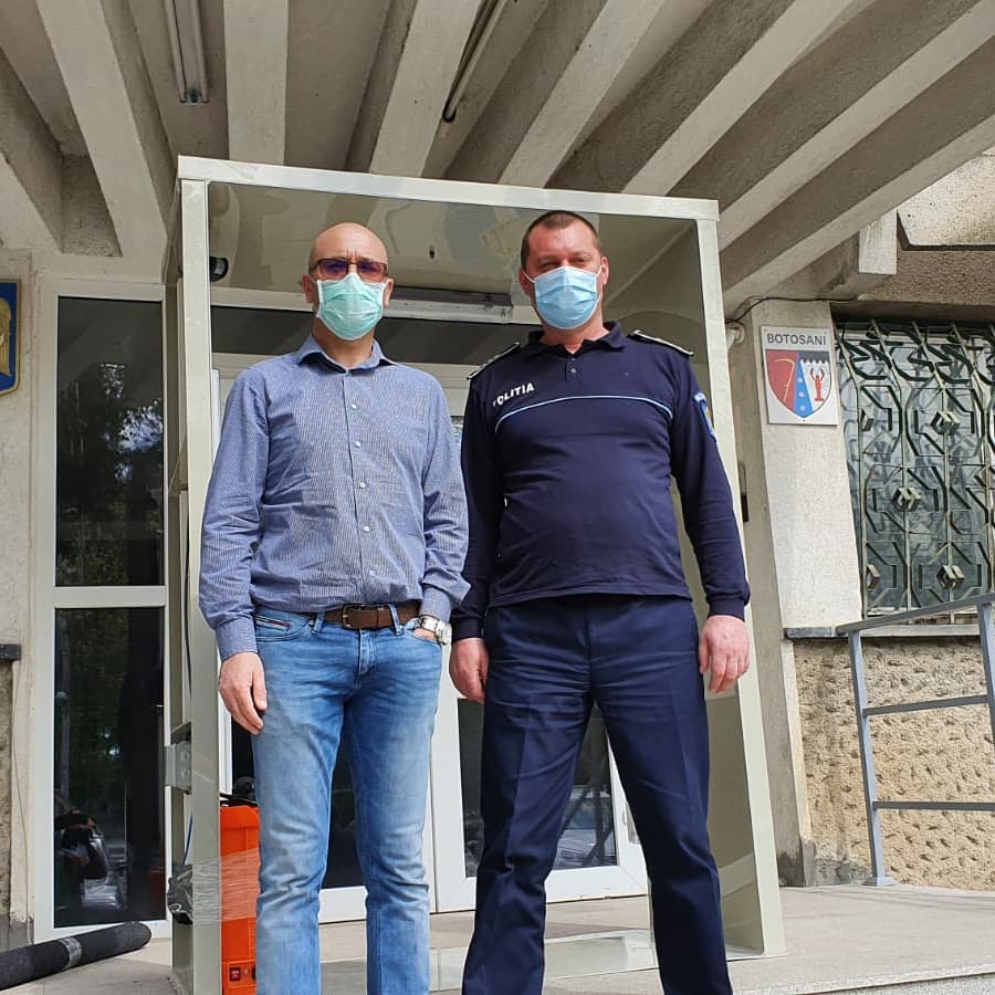 Polițiștii și jandarmii din Botoșani au la dispoziție tuneluri de decontaminare. IPA Regiunea 1 Botoșani in colaborare cu Fundația Umanitară „Salvează o inimă”, condusă de Vlad Plăcintă, a reușit să pună la dispoziția Inspectoratului de Poliție Județean Botoșani trei tuneluri de decontaminare ce vor fi utilizate la intrările: IPJ, Poliției Botoșani și Poliției Flămânzi.