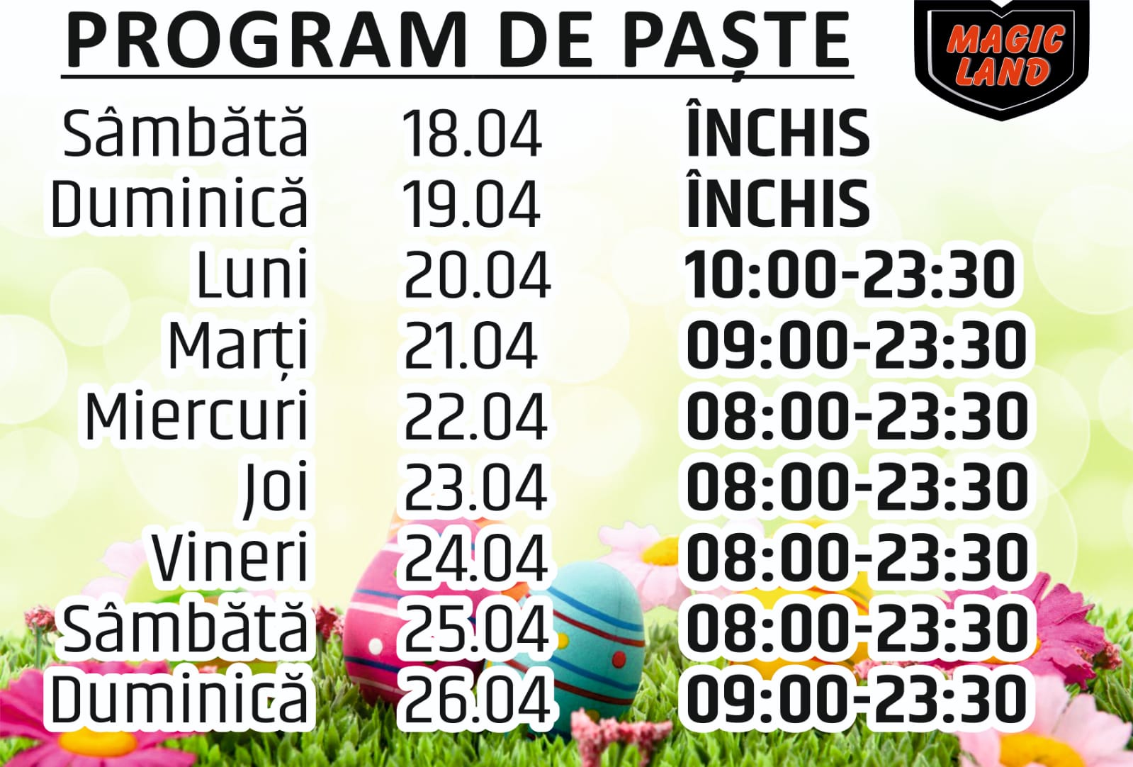 Pizzeria Magic Land are un program special în perioada sărbătorilor de Paște. Clienții au la dispoziție numerele de telefon 0231 514 014 și 0748 488 693 pentru a-și putea achiziționa mâncarea, aceasta fiind transportată la domiciliu în condiții de maximă protecție.