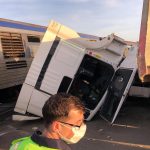 Aproximativ 20 de persoane se aflau în tren în momentul impactului. Două dintre acestea, mecanicul de locomotivă și șoferul camionului au primit îngrijiri medicale pe loc, refuzând transportul la spital.