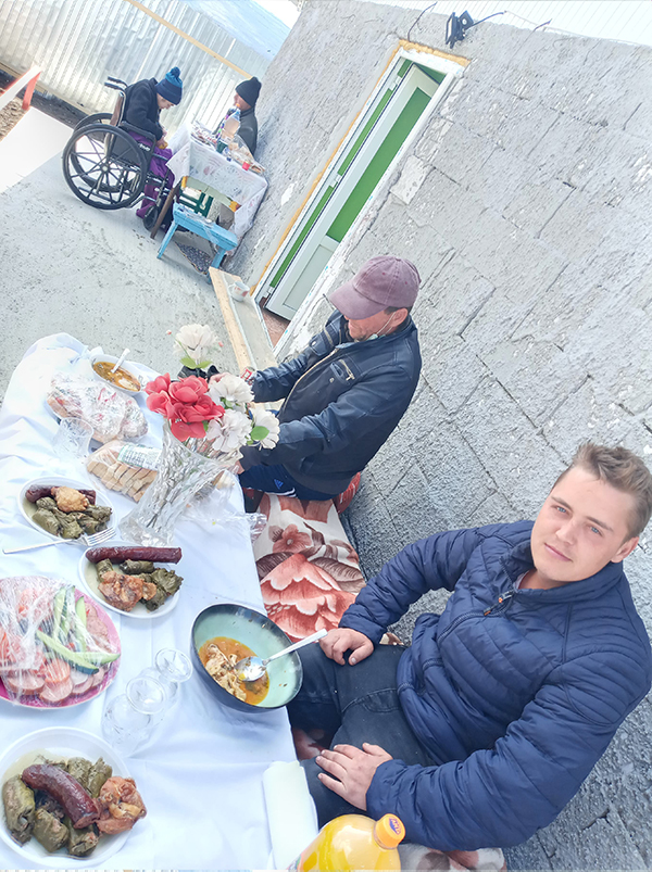 Nici el nu trece drept vreun “înstãrit”, din contrã, dar sustine cã a vrut sã îsi ajute astfel cunostintele mai necãjite decât el. În imaginile surprinse de la pomana în cauzã, nimeni nu se vede purtând mãnusi sau mãsti, dar organizatorul sustine cã a avut grijã ca cei pe care i-a adus acasã la el sã stea la distantã unii de altii, în grupuri de câte doi.