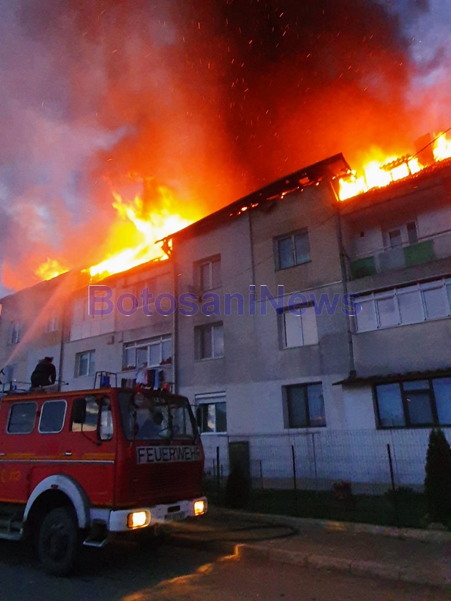 Incendiul puternic se manifesta violent, flăcările uriașe putând fi observate de la mare distanță. Zeci de persoane au fost evacuate din bloc, la fața locului intervenind mai multe echipaje de pompieri atât de la Detașamentul de pompieri Botoșani, cât și de la Serviciul Voluntar pentru Situații de Urgență Bucecea. De asemenea, spre locul intervenției au fost trimise și ambulanțe. Blocul se află în imediata apropiere a Primăriei Bucecea, pe strada Alecu Ralet. Vom reveni cu detalii!