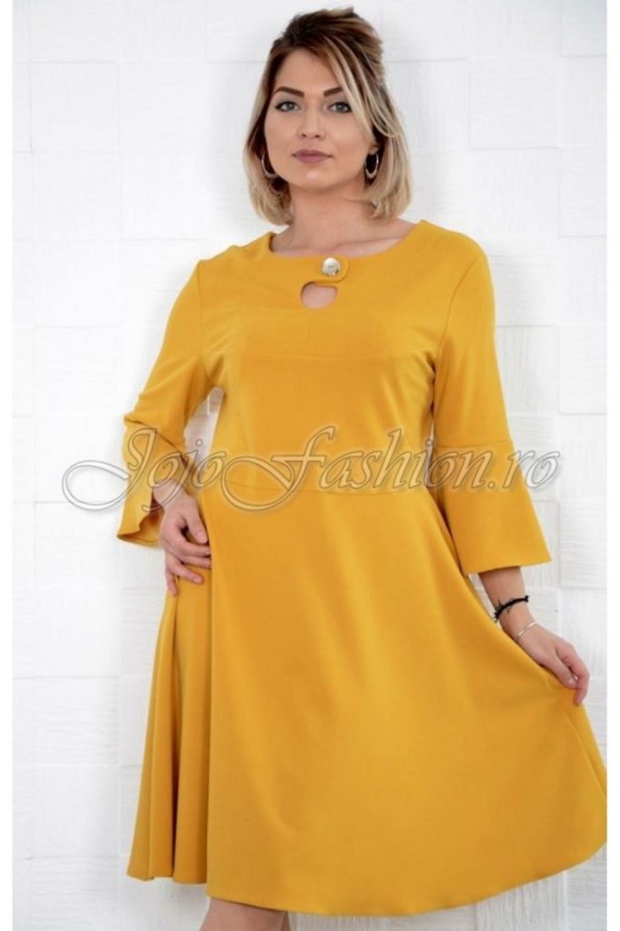 - Rochia de zi midi croi A galbena Nedia cu maneci lungi, cu decolteu la baza gatului.