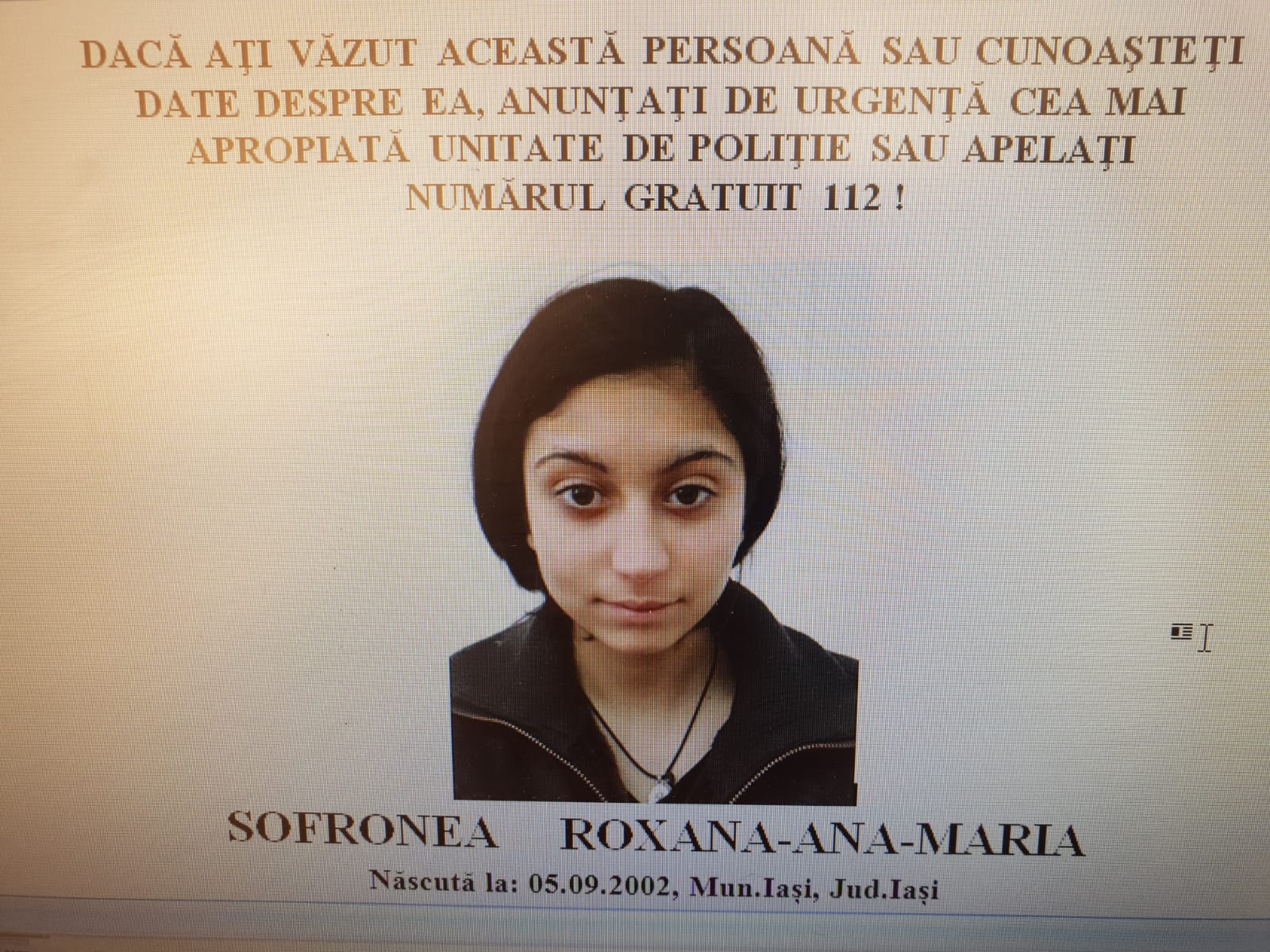 „Persoanele care pot da relaţii despre persoana în cauză sunt rugate să anunţe prin Serviciul Unic de Urgenţă 112 sau să se adreseze oricarei unitati de politie”, arată IPJ Botoșani.