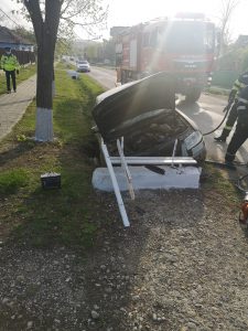 FOTO Accident la Botoşani. O maşină a intrat într-un cap de pod. Pompierii au intervenit